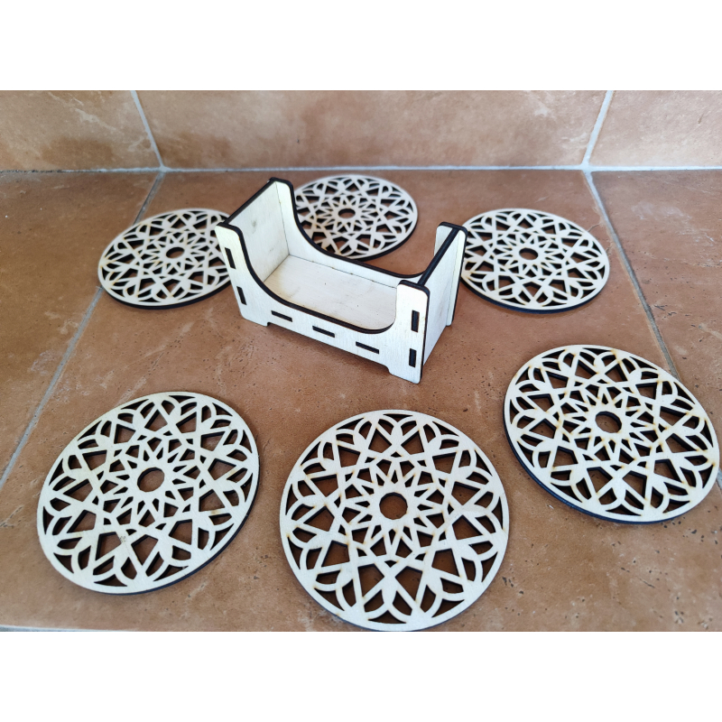 Drevenná podtácka na Vašu chalupu alebo byt. Set sa skladá zo 6 ks podtácok a držiaka.